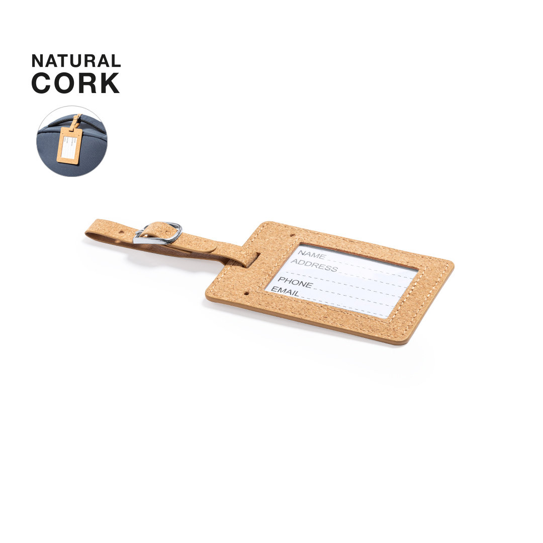 Cinta con fibbia metallica e scheda di identificazione in inglese.