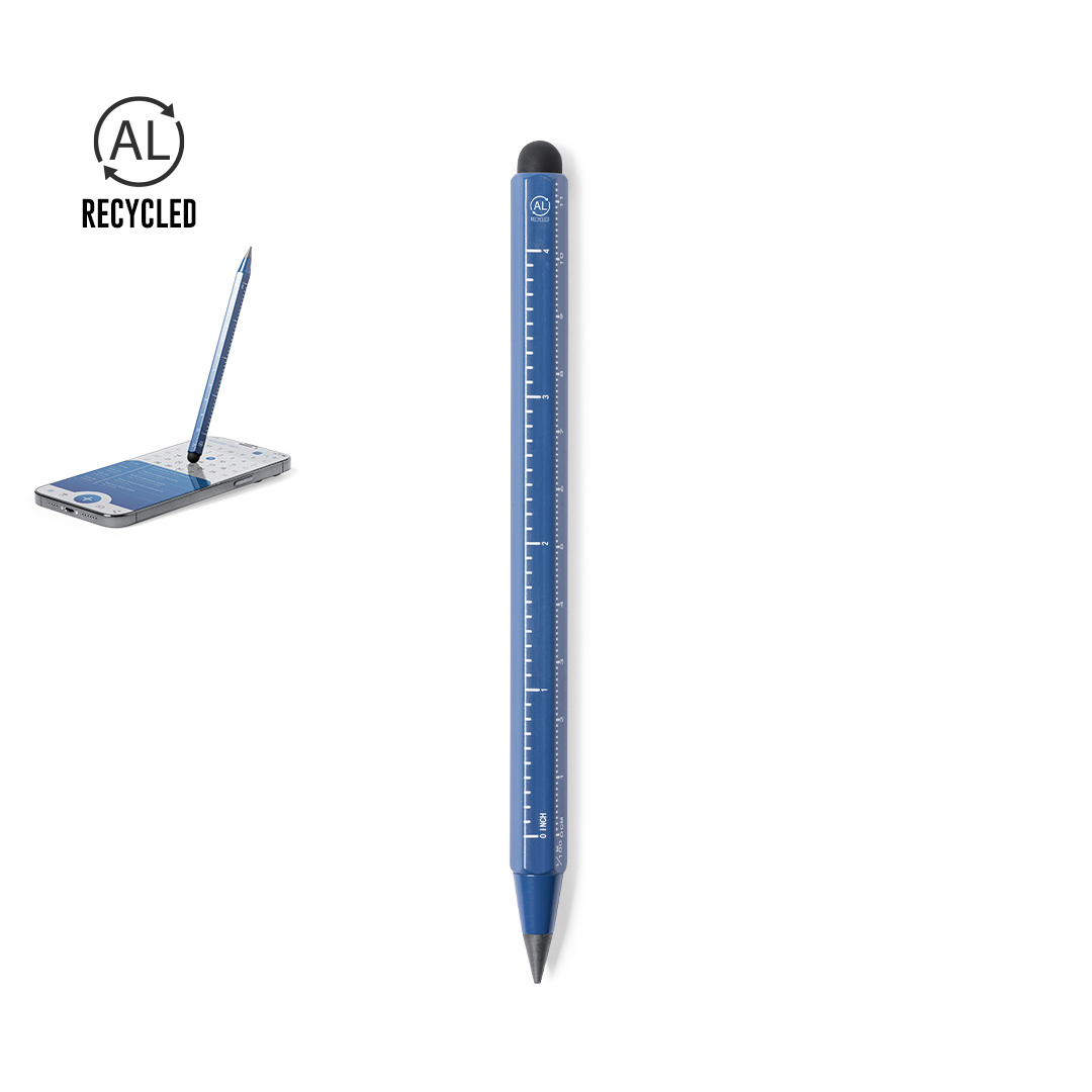 Funzioni di matita, stilo e righello, con misure in centimetri (11) e pollici (4).