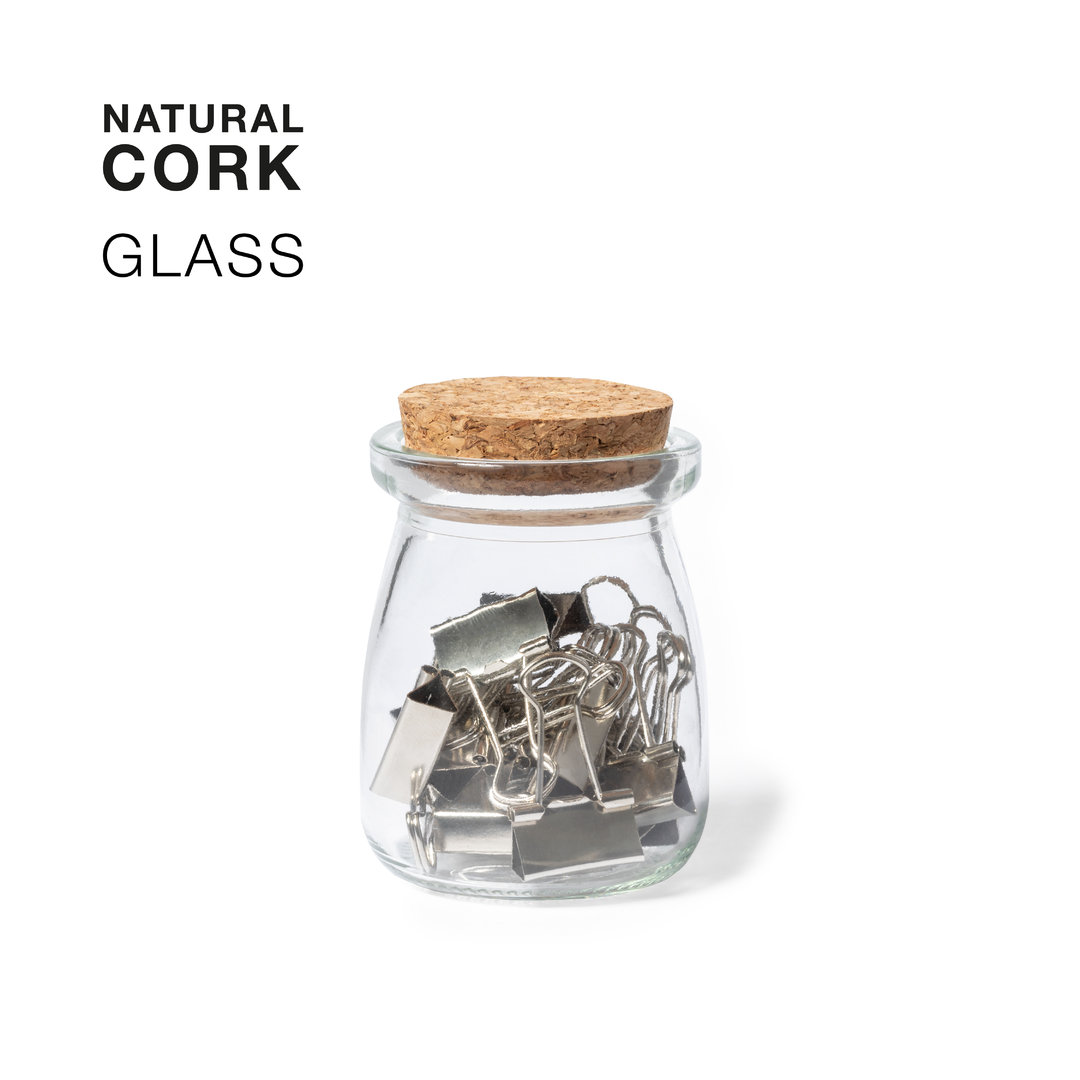 Portafermagli in resistente vetro trasparente, con originale design vintage e tappo in sughero naturale.