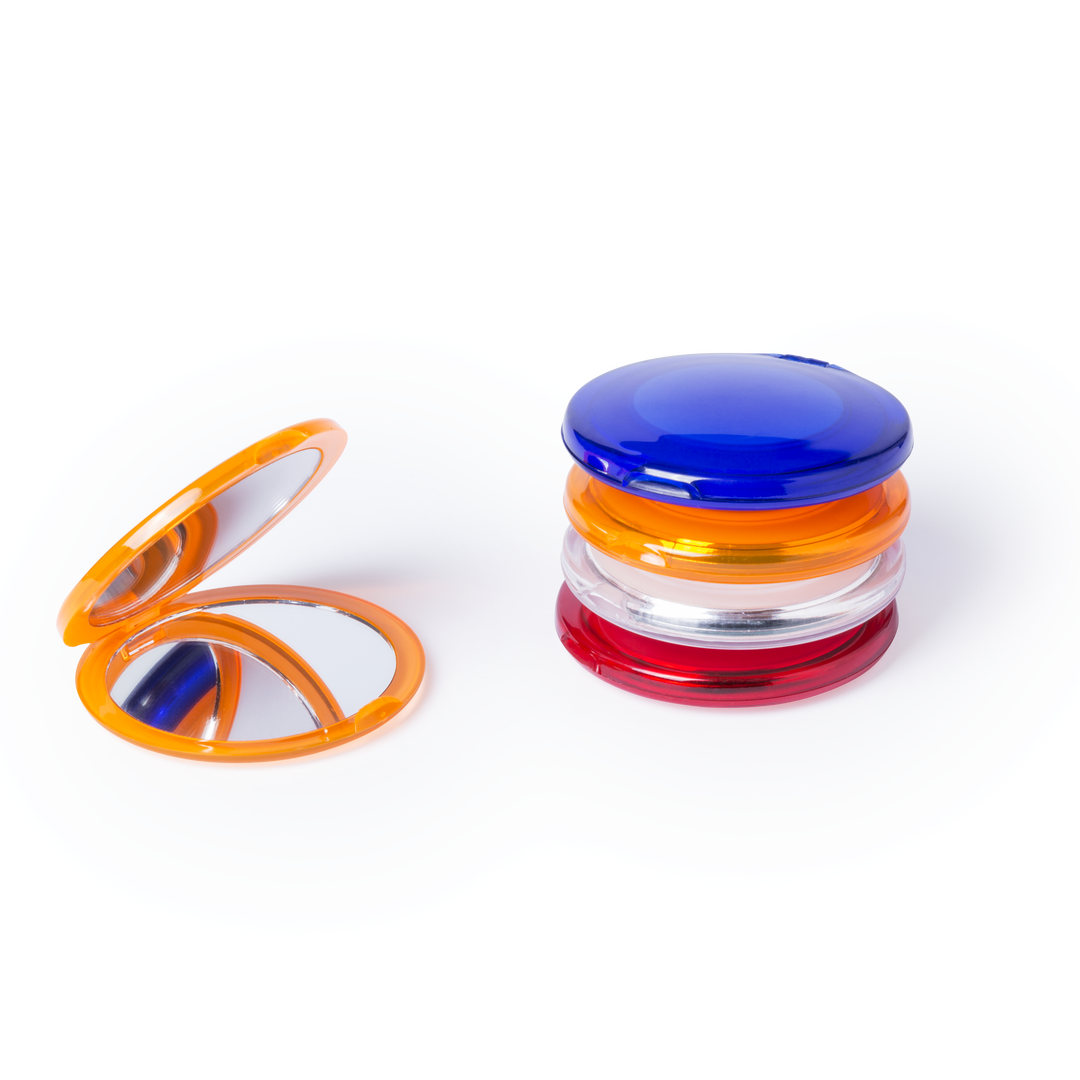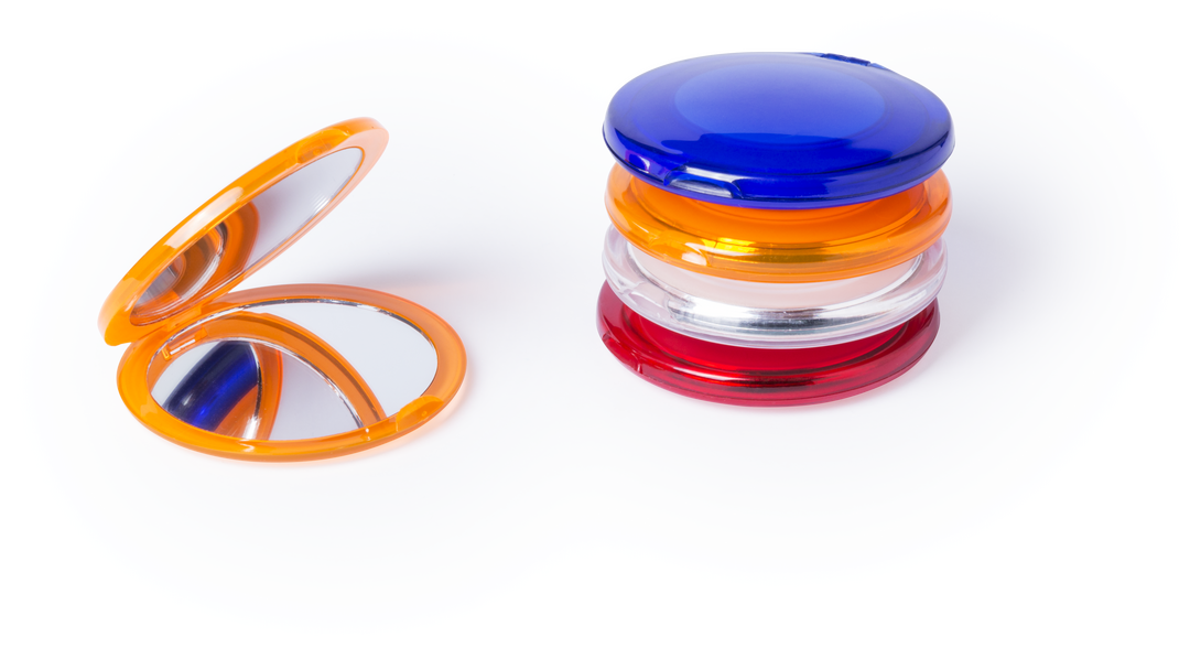 Specchio pieghevole in un'ampia gamma di colori trasparenti e brillanti con due specchi interni con ingrandimento 1x/2x.