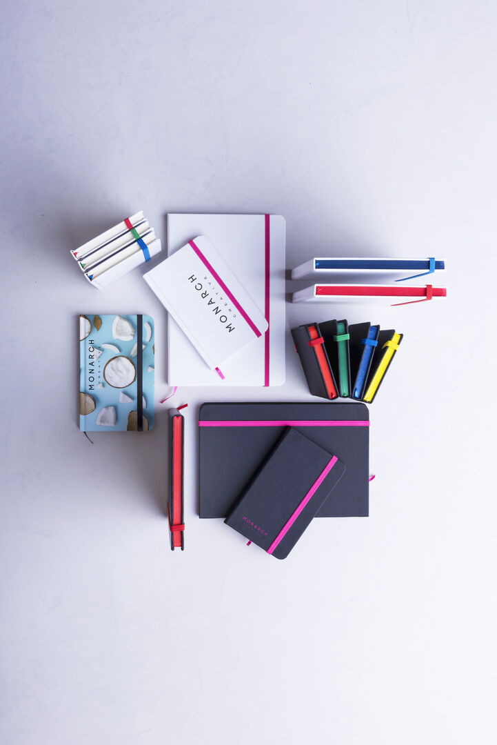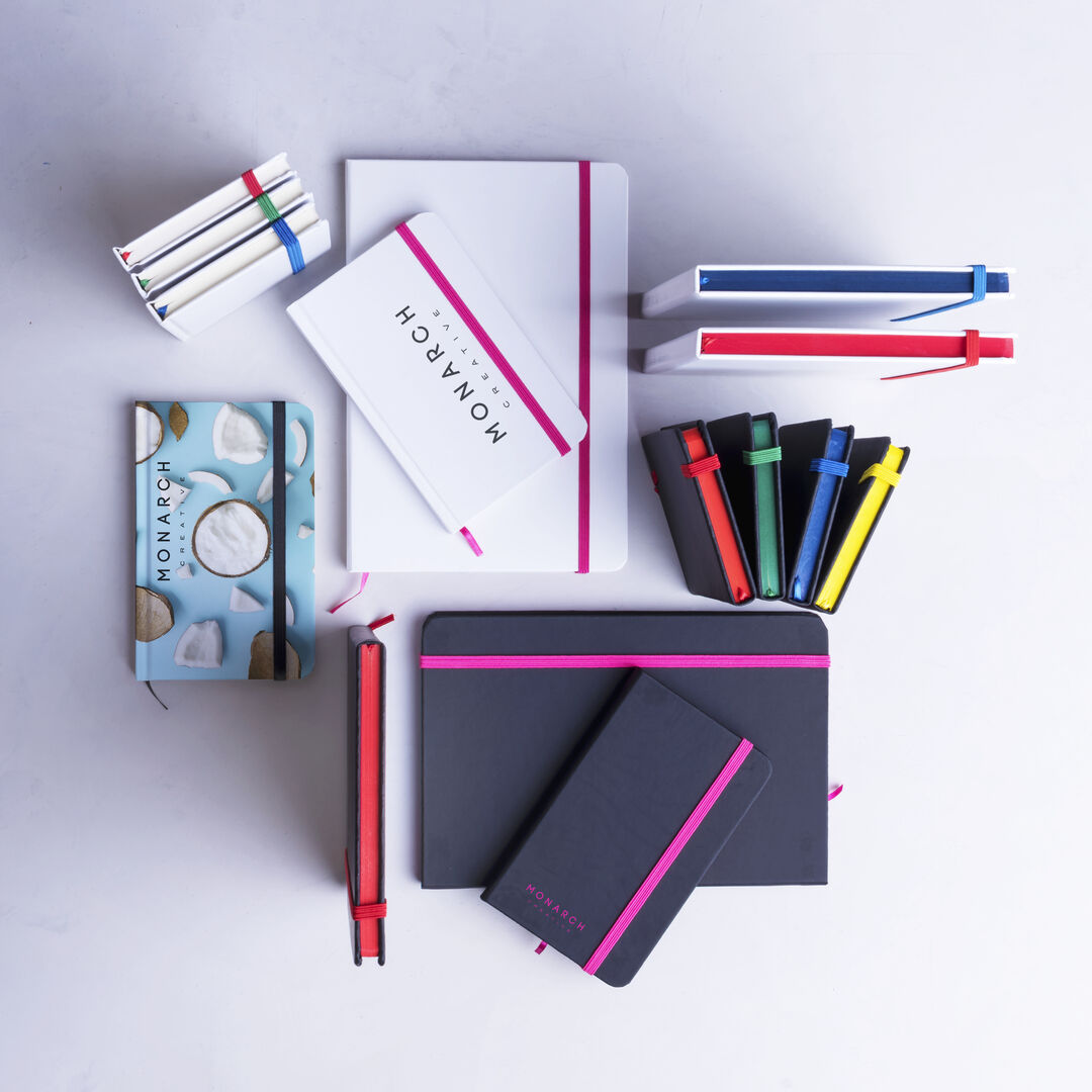 Block notes con copertina soft touch rifinita in elegante similpelle nera. 80 fogli lisci con dorso in colori divertenti, rilegatura elastica e segnalibro in tessuto abbinato.