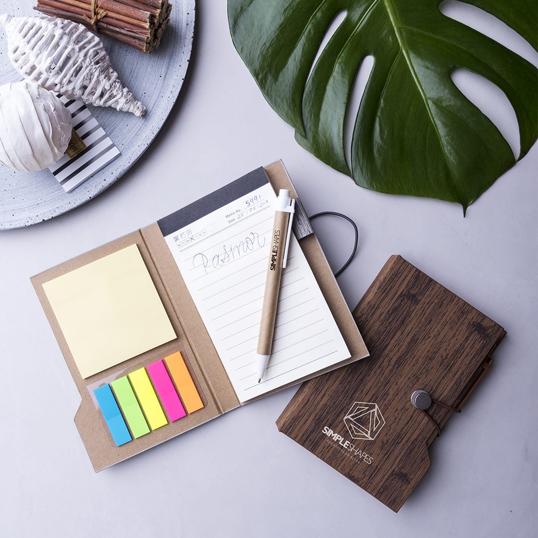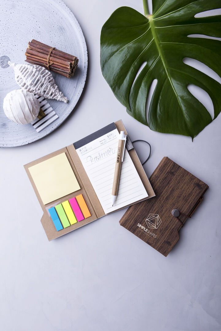Block notes in similpelle originale con venature simil legno in un'ampia gamma di colori.