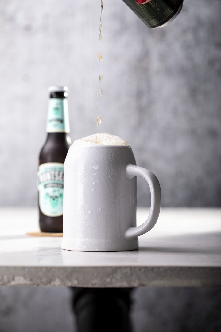 Caraffa in ceramica con elegante finitura bianca per chi adora la birra.