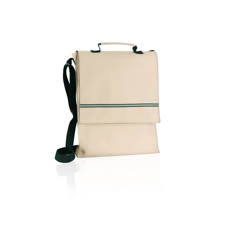 Con manico rinforzato in tinta, tracolla regolabile e scomparti interni con portapenne e porta smartphone.