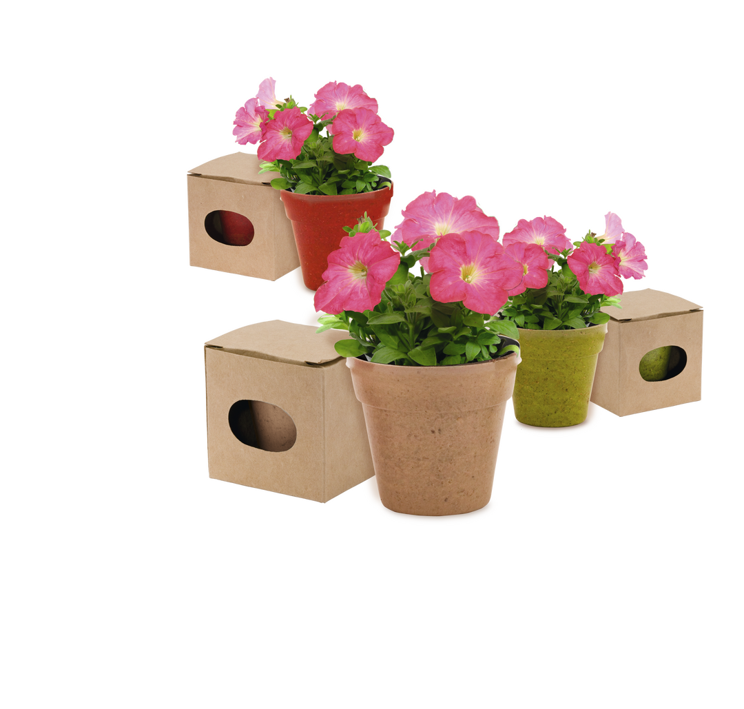 Vasi con semi di Petunia, con vasi della linea naturale e in vari colori.
