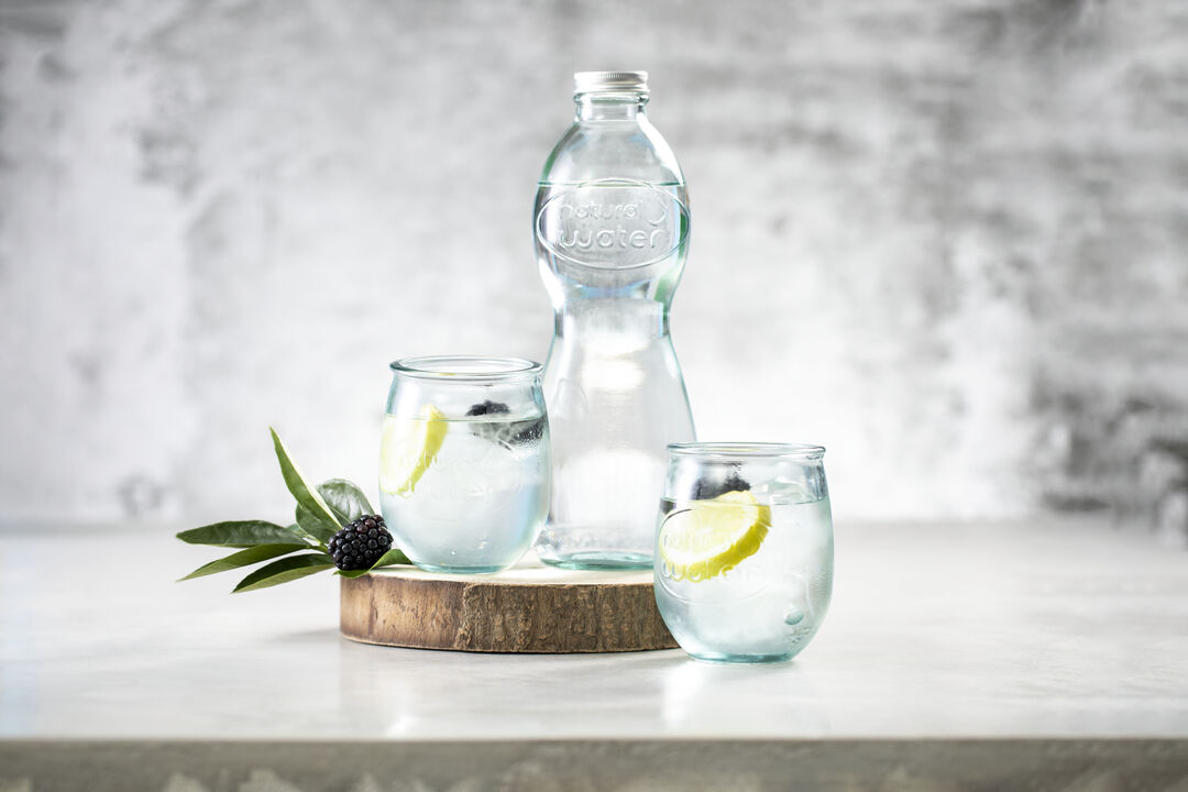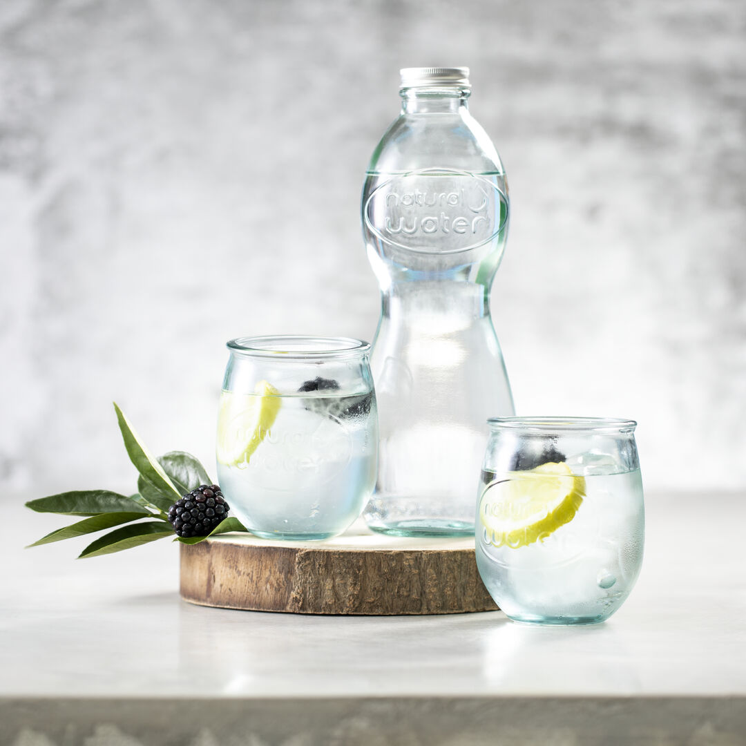 Set della linea natura composta da 2 bicchieri di 400 ml e una bottiglia di 1l.