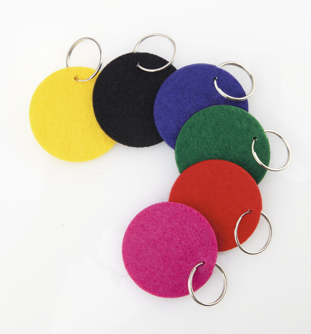 Portachiavi rotondo con corpo in morbido feltro in una varietà di colori vivaci.