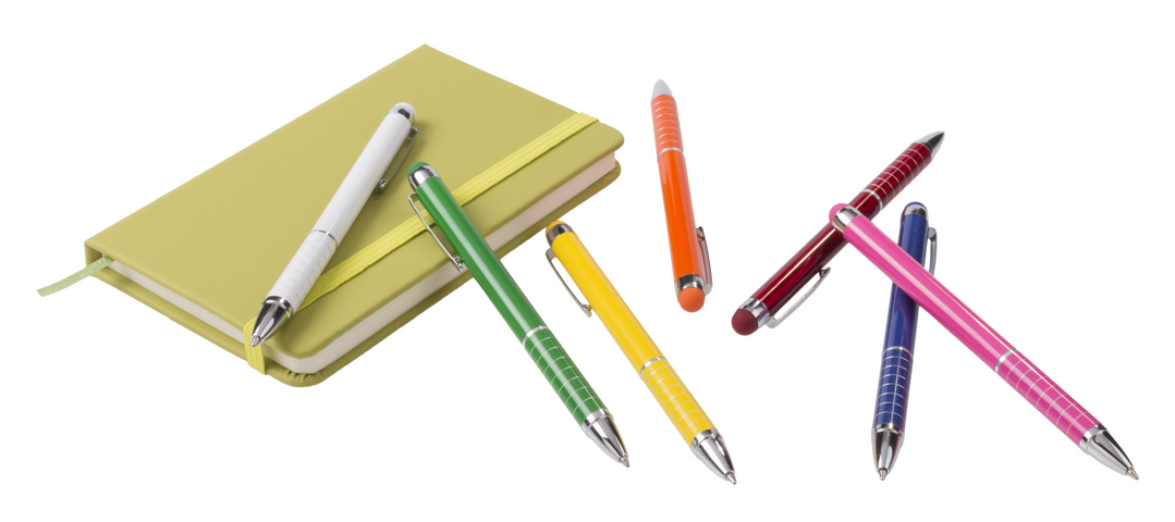 Penna Touch con meccanismo a rotazione bicolore con elegante finiture in argento lucido e fusto liscio dai colori vivaci e metallizzati.