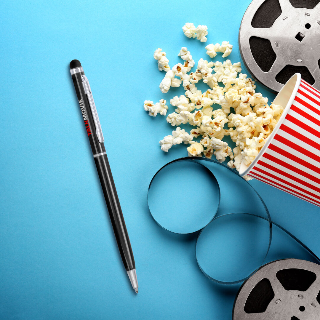 Penna Touch con meccanismo a rotazione con fusto in alluminio ultrasottile con finitura metallizzata liscia in diversi colori e touch abbinato.