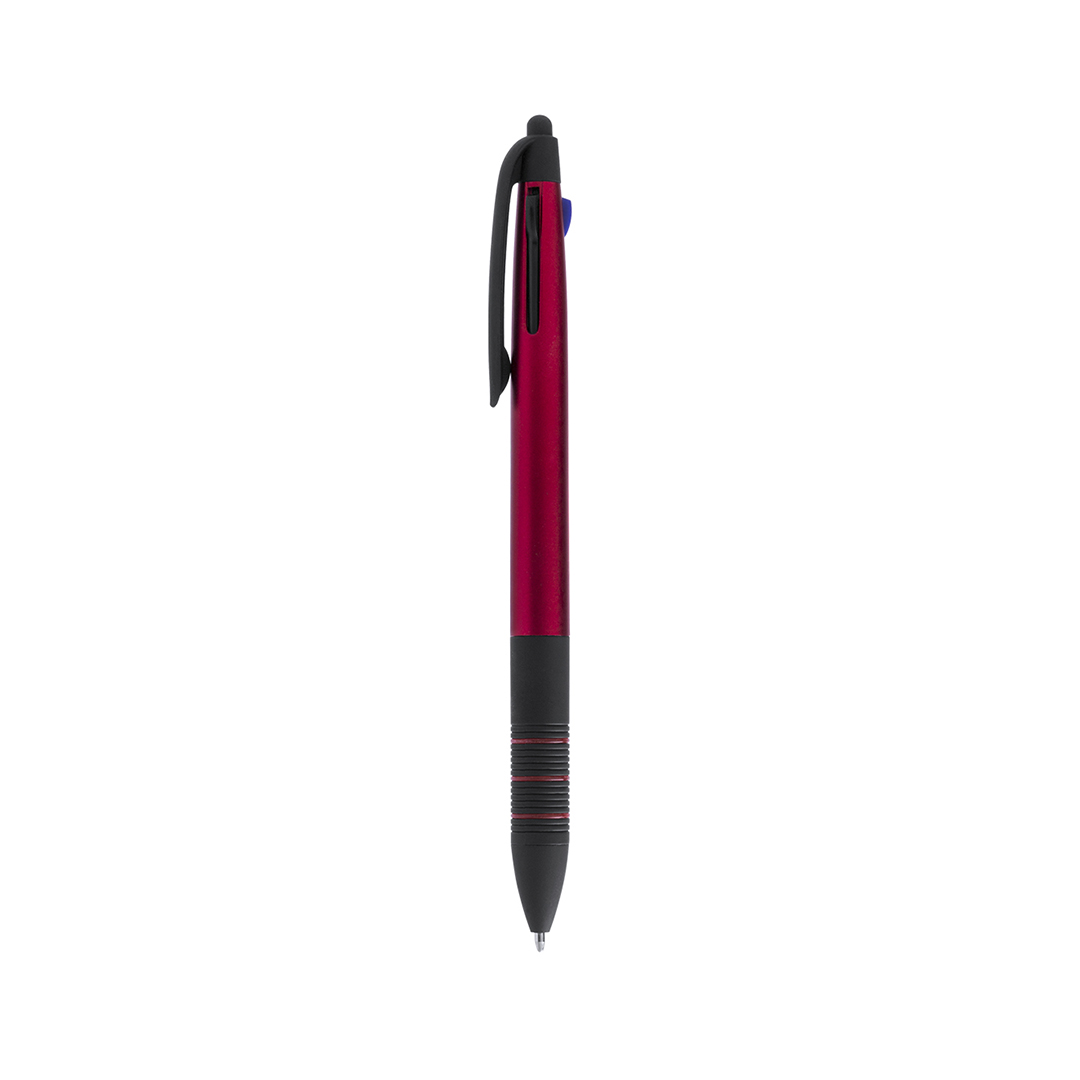 Penna touch 3 in 1 con meccanismo a pulsante rettrattile dal design moderno con fusto liscio e finitura metallica in colori vivaci.