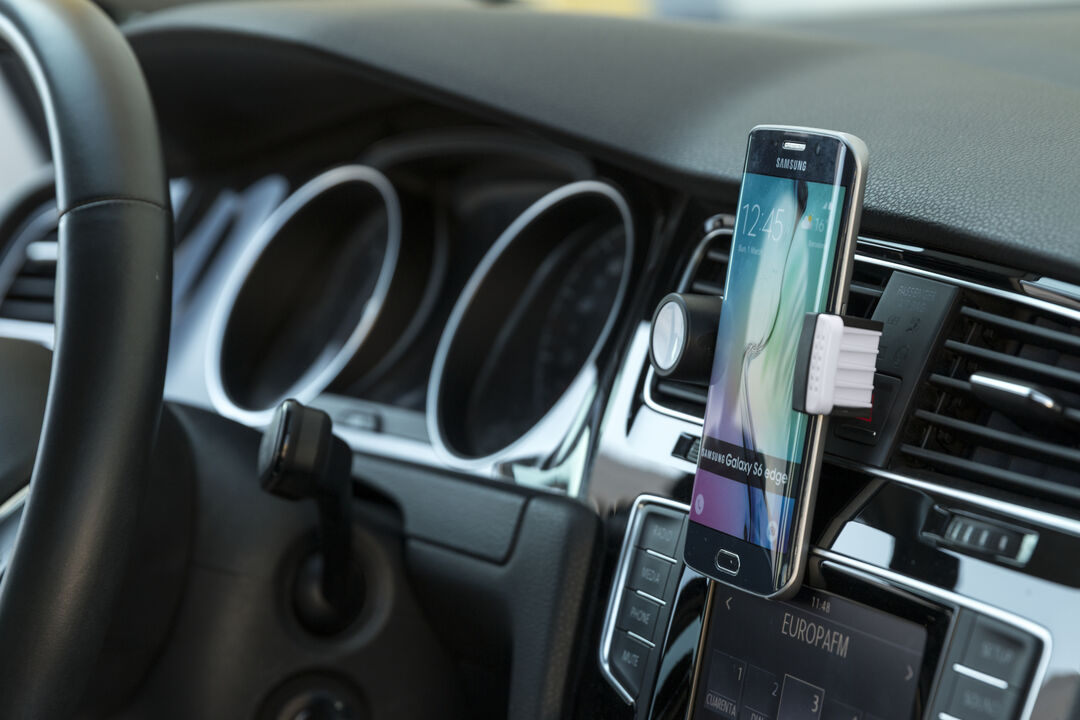 Con sistema di fissaggio per la griglia di ventilazione dell'auto e tavoletta circolare anteriore appositamente progettata per la stampa in tampografia.