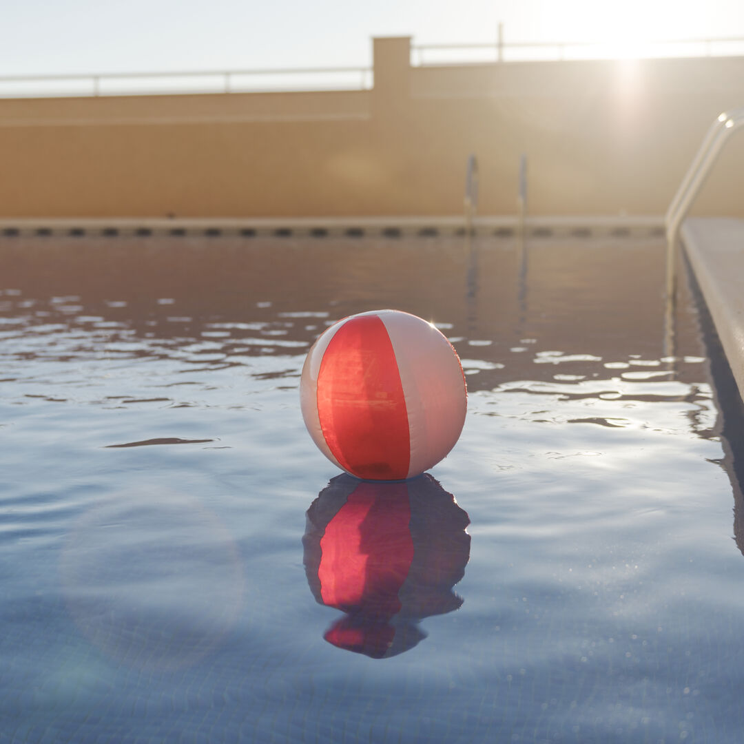 Pallone gonfiabile in PVC con design bicolore in combinazione di pannelli bianchi e trasparenti in colori vivaci.