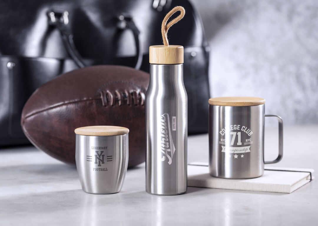 Info: Tazza termica in acciaio inossidabile con una capacità di 350ml. Coperchio in bambù. Confezionato in un'attraente scatola di eco design.
