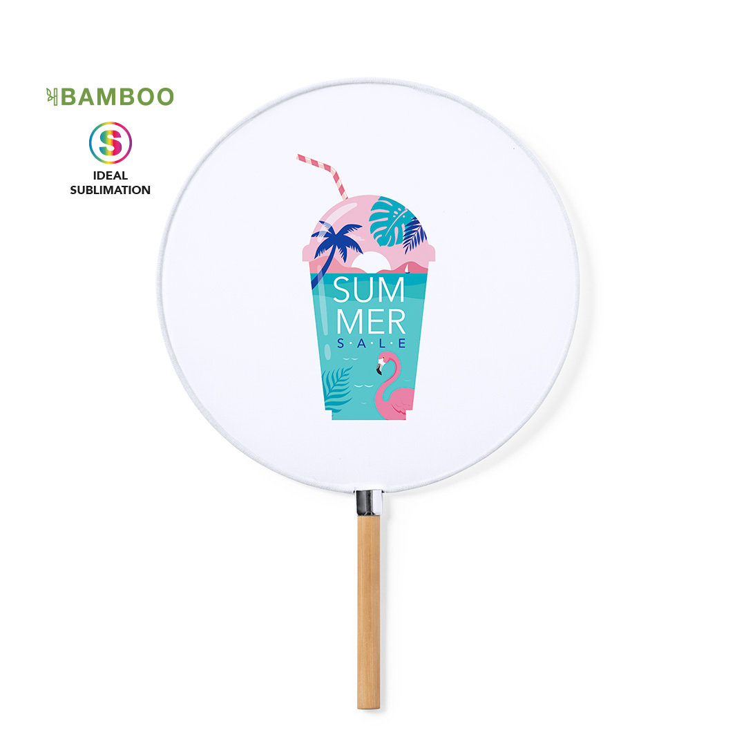 Info: Elegante Pai Pai in resistente poliestere realizzato appositamente per la sublimazione. Con manico in bambù e dettagli cromati.