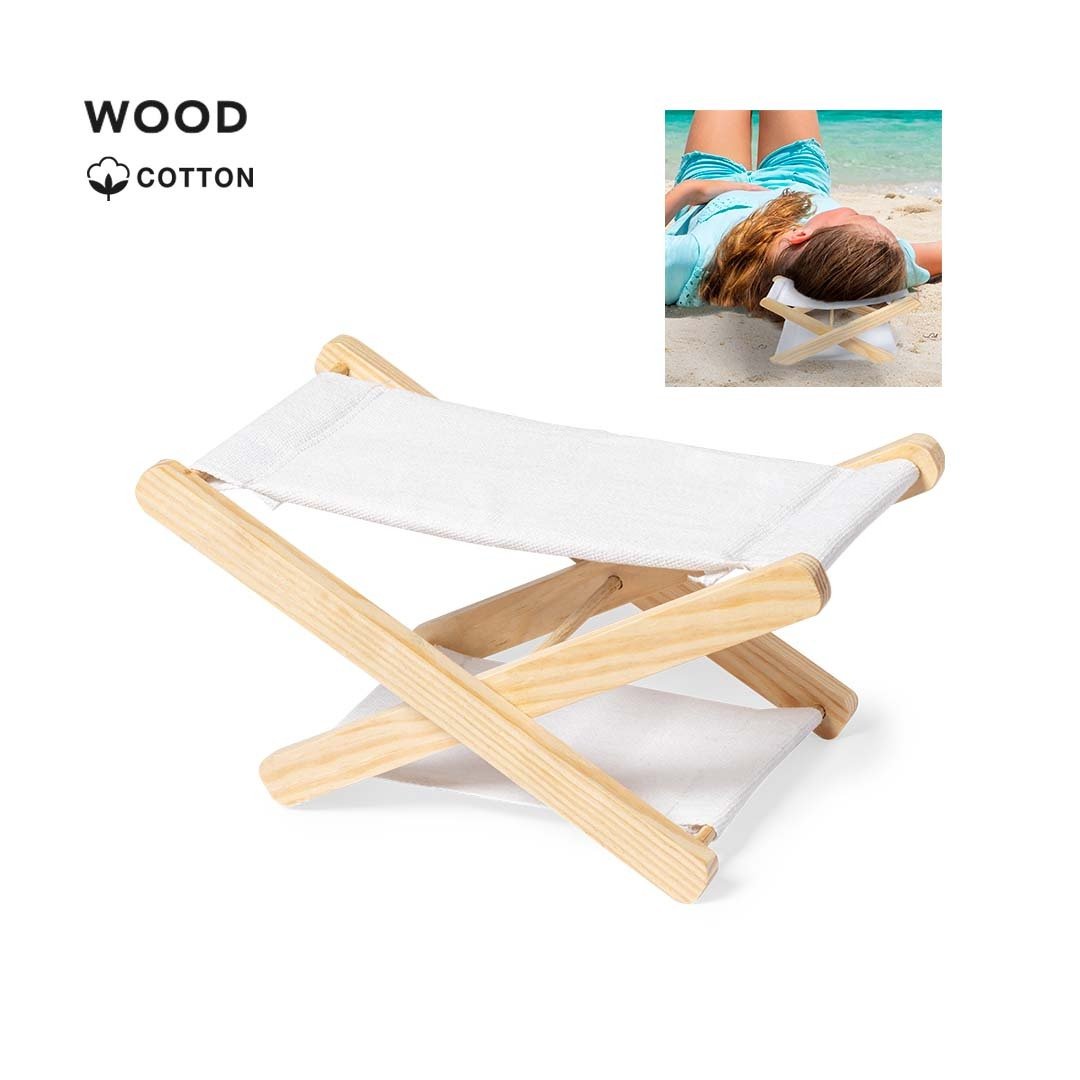 Info: Originale poggiatesta pieghevole, con struttura in legno e tessuto 100% cotone con finitura naturale.