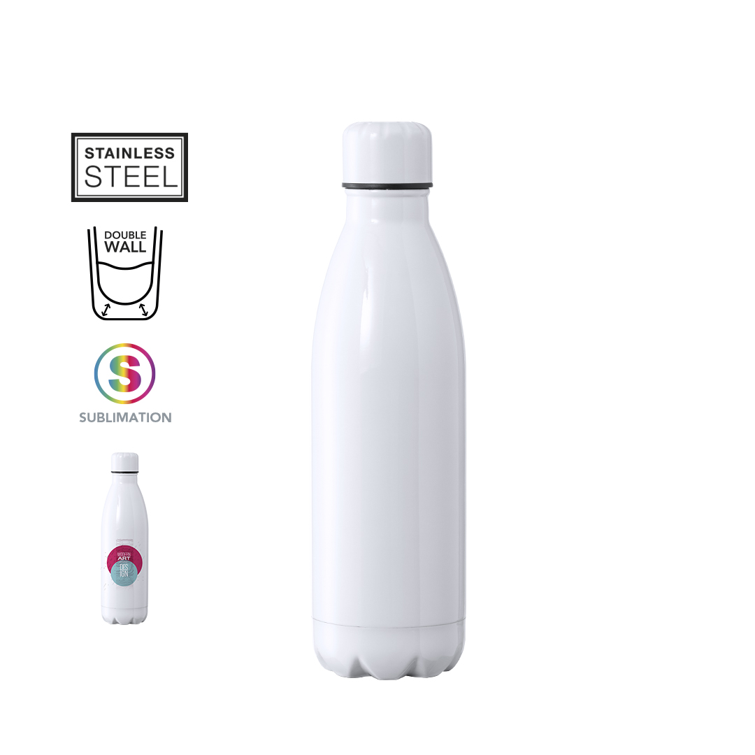 Info: Borraccia termica da 500 ml, realizzata in acciaio inox a doppia parete e progettata appositamente per la stampa in sublimazione. Finitura bianca lucida con tappo a vite BPA-free abbinato. Confezionata singolarmente in una scatola dal desing kraft .Manuale di istruzioni disponibile in spagnolo e inglese.
