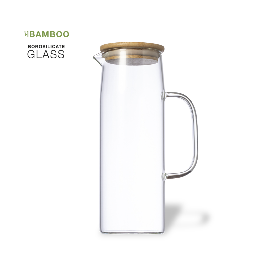 Info: Caraffa da 1,25 l di capacità, realizzata in vetro borosilicato, che offre un'eccezionale resistenza e durata, prolungando la sua vita utile e potendo essere riutilizzata innumerevoli volte. Tappo in bambù con chiusura a pressione. Presentata in una scatola individuale dal design kraft.