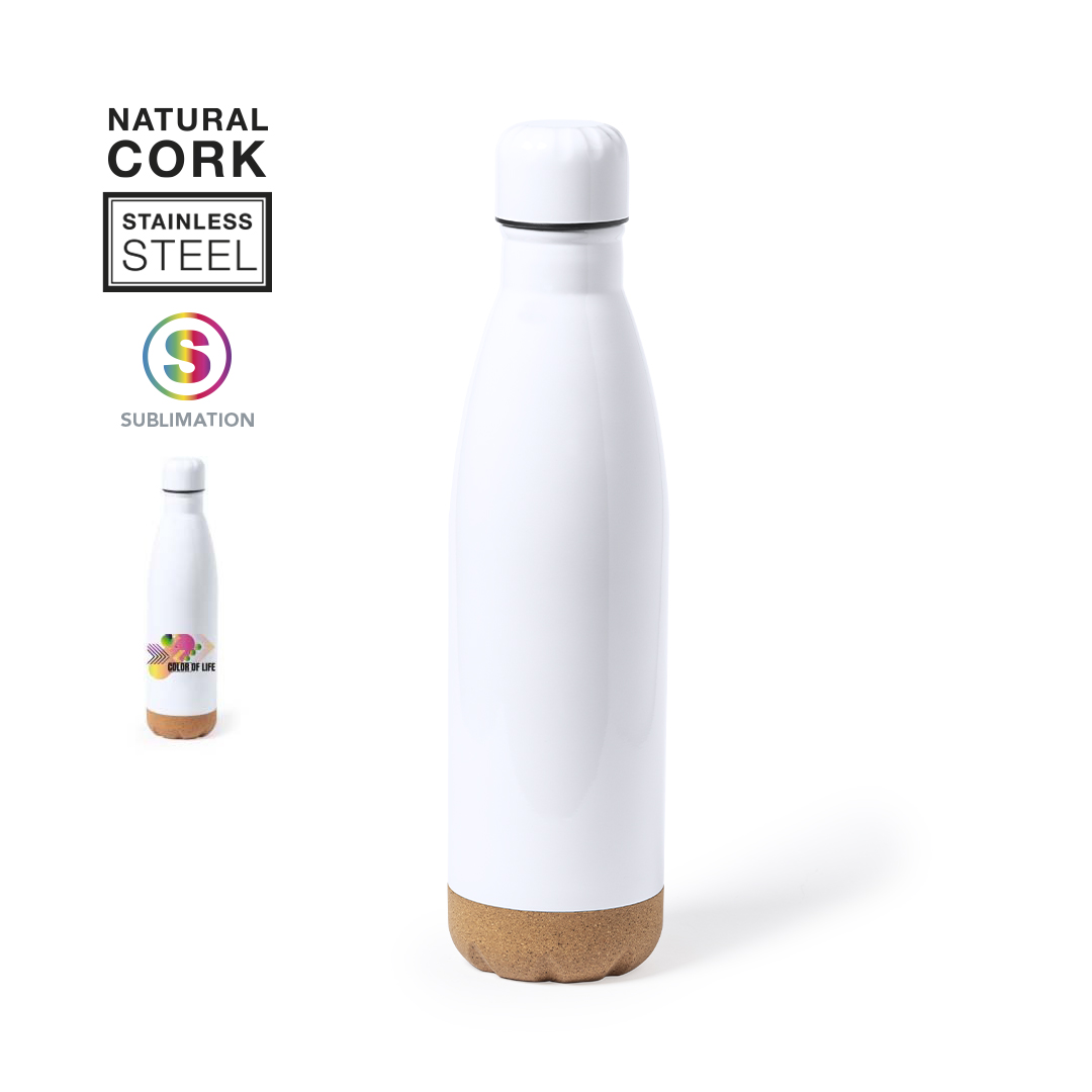 Info: Capacité de 750 ml, fabriqué en acier inoxydable et spécialement conçu pour le marquage en sublimation. Finition blanche brillante, avec bouchon à vis assorti et base en liège naturel. Sans BPA et présenté dans une boîte individuelle au design kraft.Manuel d'instructions disponible en espagnol et en anglais.