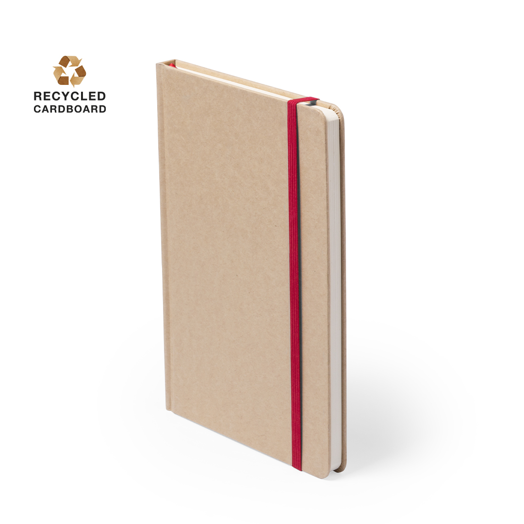 Info: Block notes A5 con copertina rigida in robusto cartone riciclato. Con 100 fogli bianchi lisci ed elastico di chiusura.
