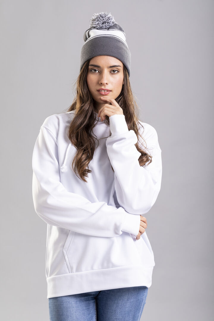 Info: Caldo e morbido berretto in materiale acrilico in una varietà di colori. Design originale, con striscia frontale bianca e pom pom bicolore abbinato.