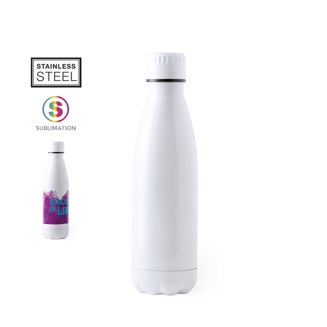 Info: Borraccia per la sublimazione da 700 ml con corpo in acciaio inox di colore bianco lucido. Con tappo di sicurezza. Presentata in un'attraente scatola di design.