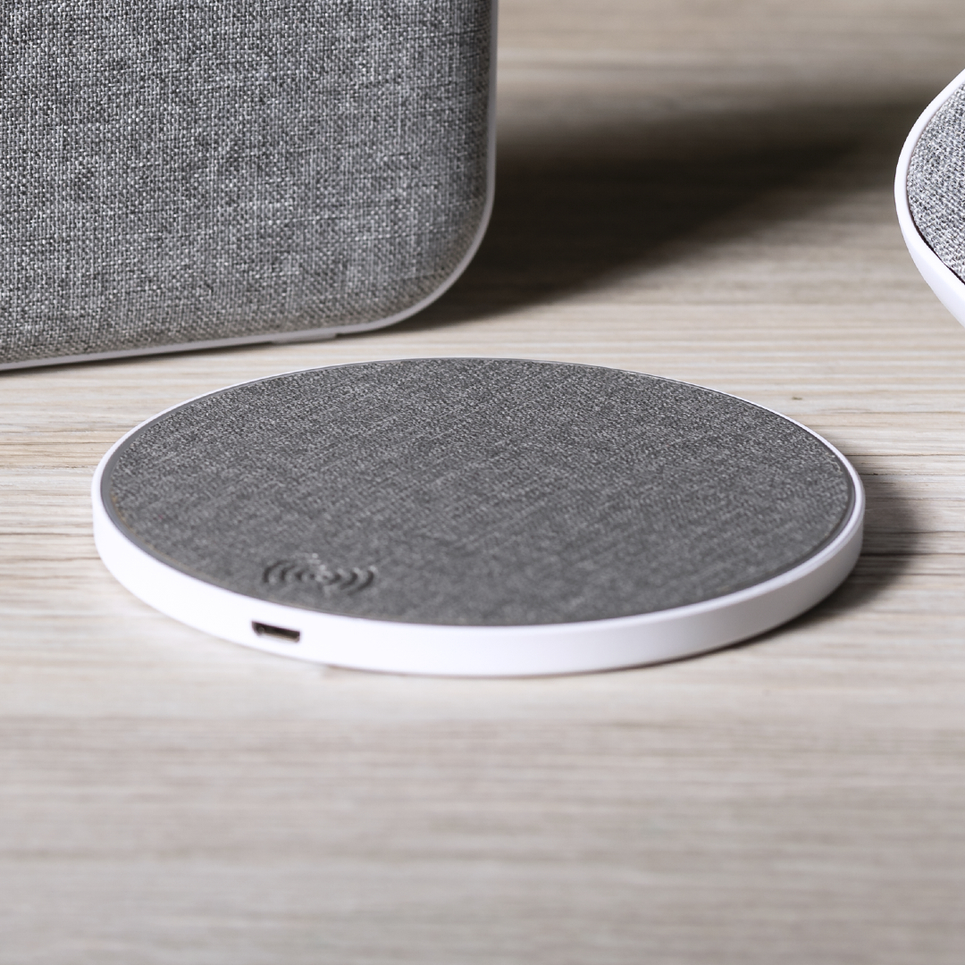 Info: Caricatore wireless dal design circolare bicolore con base in poliestere. Con uscita USB, cavo di ricarica micro USB, base antiscivolo e compatibile con i dispositivi dotati di tecnologia di ricarica wireless. Presentato in un'attraente scatola di design.