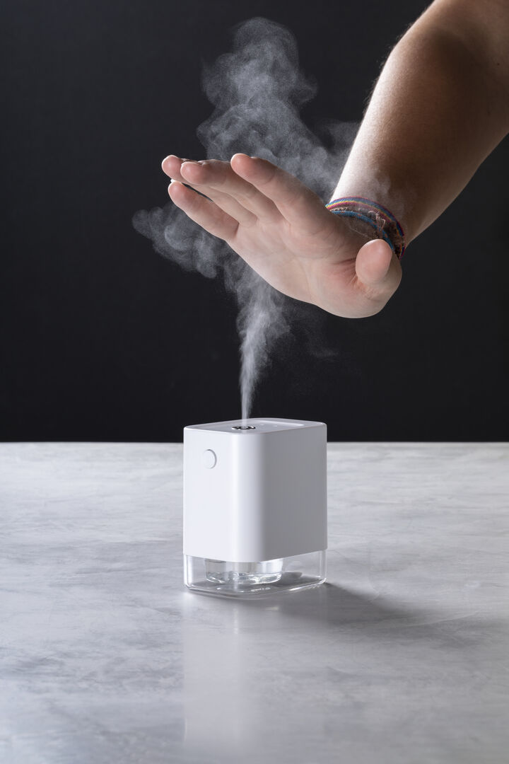 Info: Distributore automatico di alcol per l'igiene e la pulizia della pelle, con sensore di movimento a infrarossi e led di segnalazione. Dimensioni compatte e discreta, finitura bianca opaca particolarmente adatta per la tampografia, con serbatoio da 45 ml facilmente ricaricabile (alcool non incluso ), più filtro e molla di ricambio.Batteria agli ioni di litio da 1800 mA e capacità di conversione elettronica ≥ 90%. Ricaricabile tramite cavo USB tipo C lungo 1 metro in tinta.Presentato in una scatola dal design accattivante, manuale di istruzioni disponibile in spagnolo in inglese