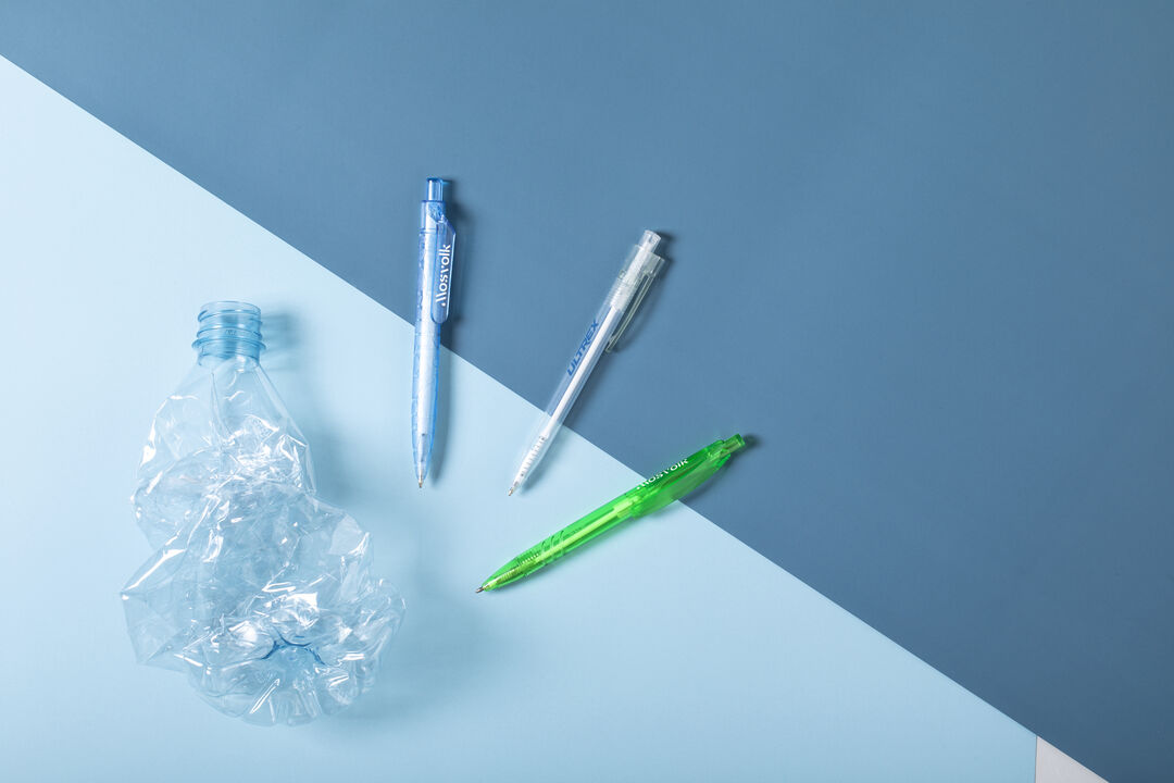 Info: Penna della linea Nature, realizzata in RPET, plastica riciclata, per favorire il riutilizzo dei rifiuti plastici e aiutare la sostenibilità del pianeta.Finitura traslucida, logo RPET sul corpo della penna e disponibile in un'ampia gamma di colori. Clip appositamente studiata per la stampa in tampografia, con meccanismo push e refill blu
