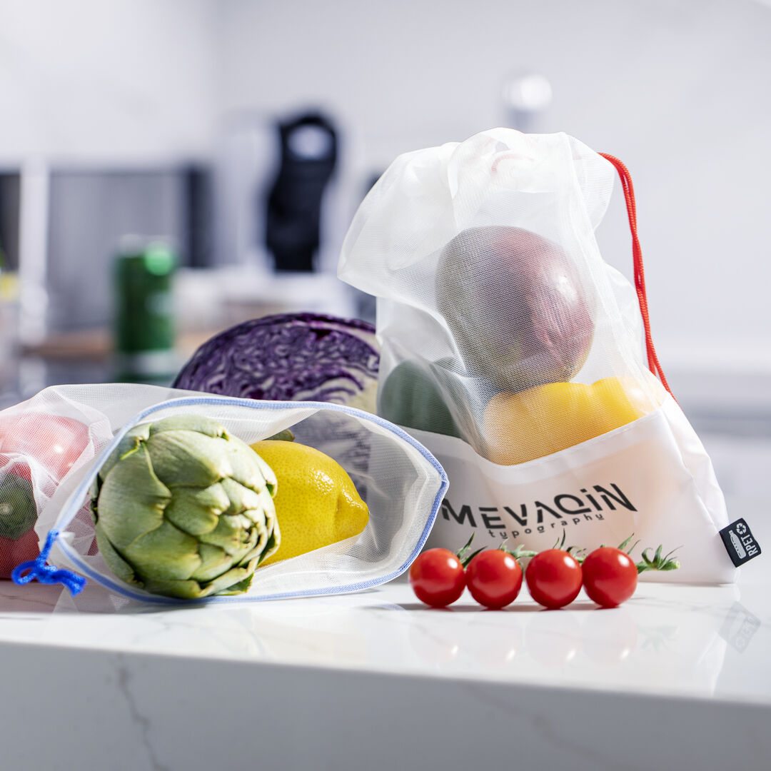 Info: Set di sacchetti della linea natura in resistente RPET, realizzati in plastica riciclata per favorire il riutilizzo dei rifiuti plastici e contribuire alla sostenibilità del pianeta. Comprende 3 pezzi da 25x30 cm con chiusura a cordoncino colorato e etichetta RPET esterna. Con un'ampia area di stampa su entrambi i lati dei sacchetti.