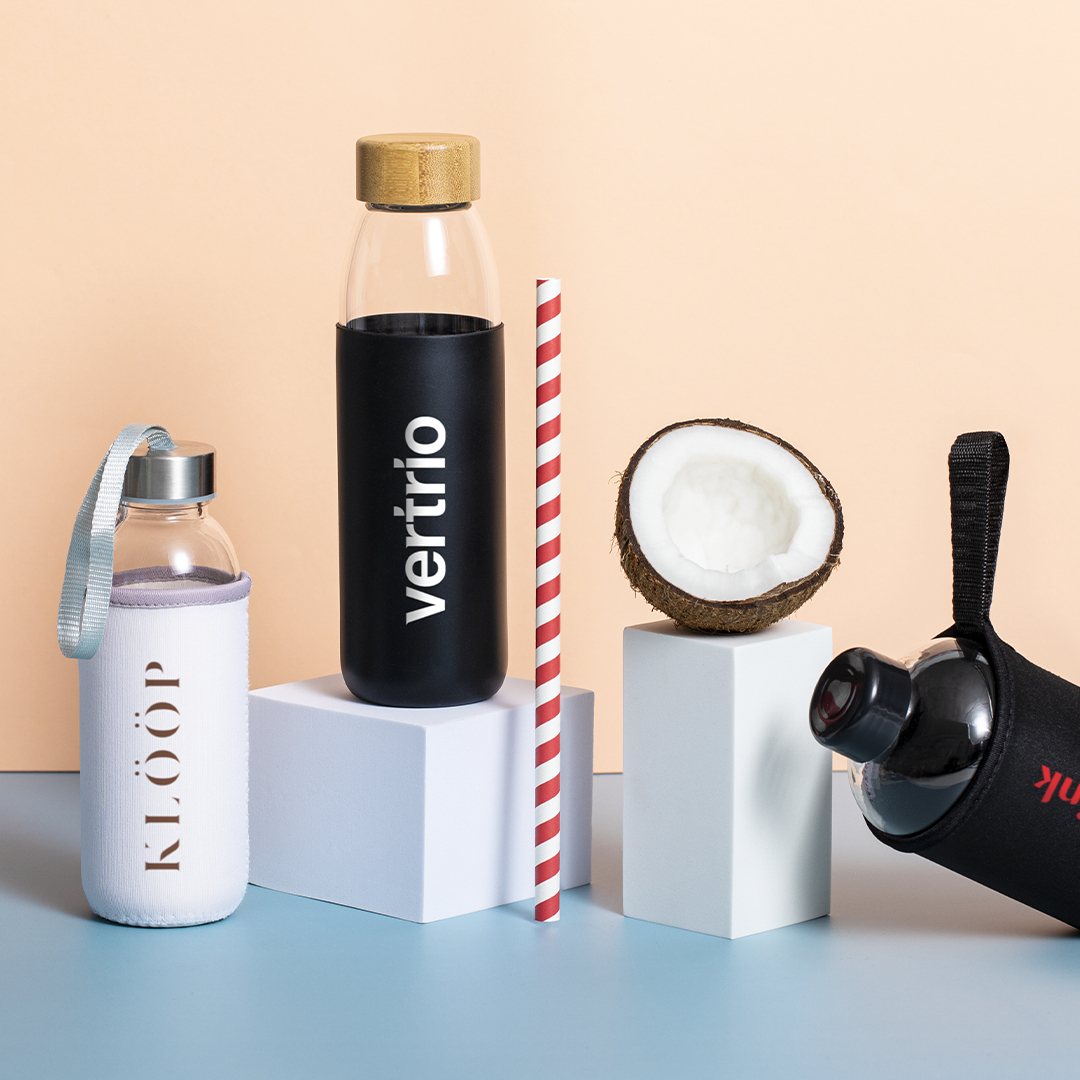Info: Borraccia della linea Nature da 540ml. Prodotta con fusto in vetro e tappo a vite in bambù. Include una cover in silicone. Confezionata singolarmente in una scatola dal design accattivante. Questo articolo può essere stampato solo a 1 colore (bianco/nero).