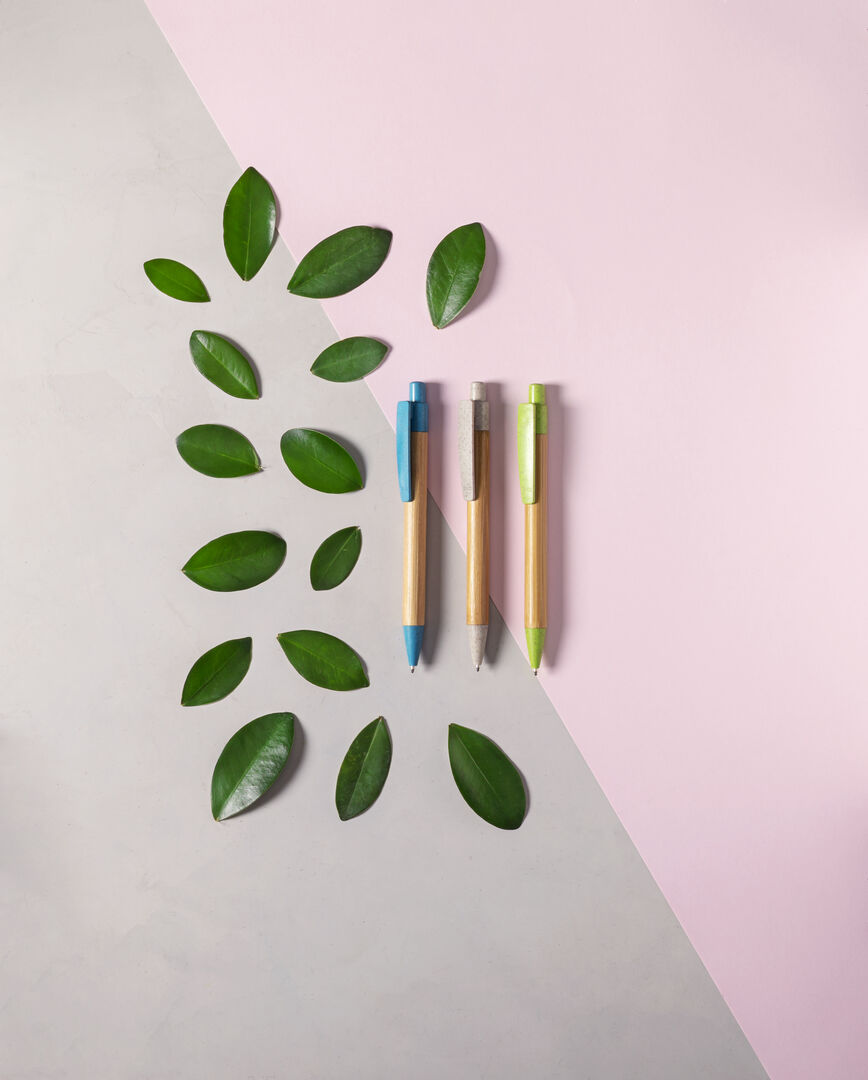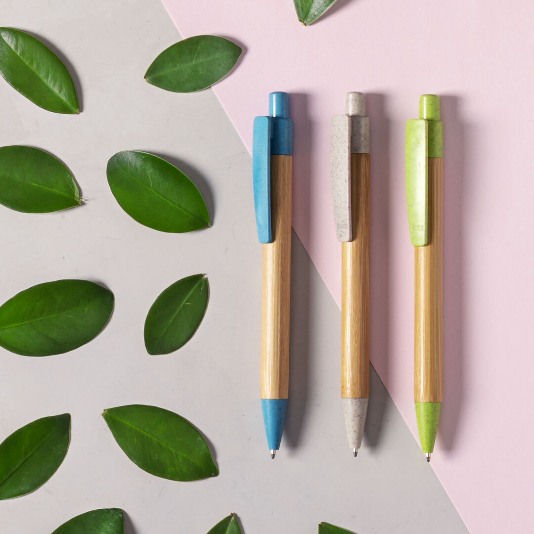 Corpo in bambù, con accessori coordinati in canna di grano, al fine di promuovere l'uso di materie prime naturali e ridurre le emissioni inquinanti.